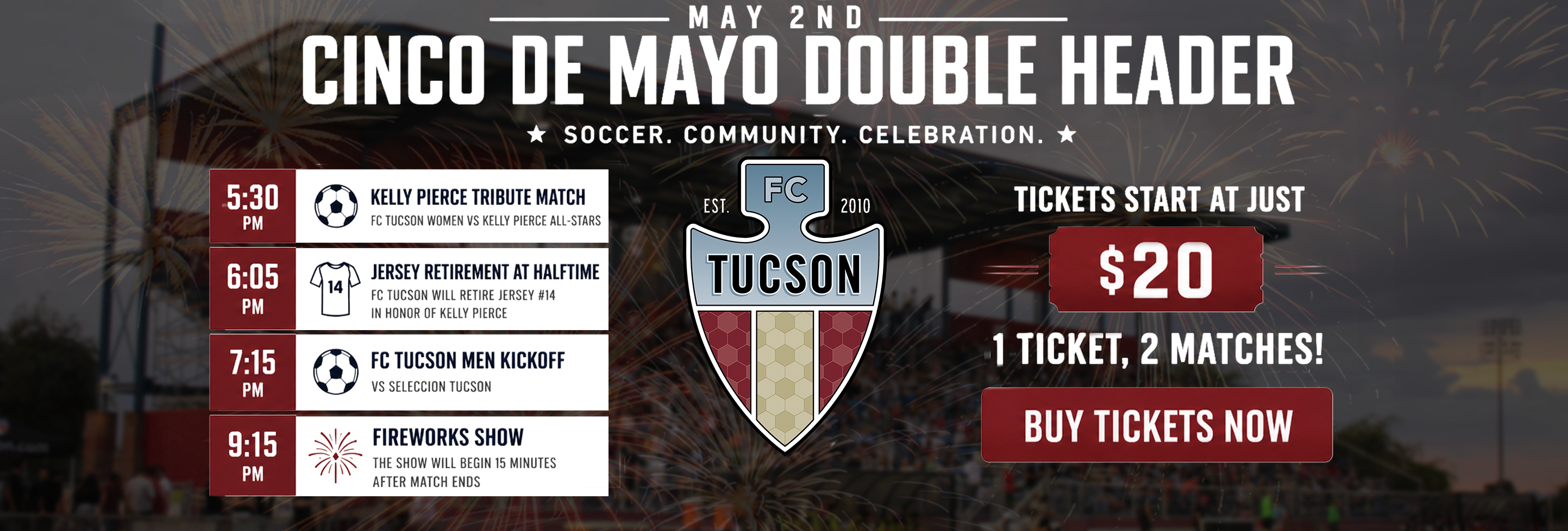 ABOUT TICKETS TEAM STORE FC TUCSON WOMEN Latest News FC Tucson to Honor Kelly Pierce with Tribute Match During 2026 Home Opener Cinco de Mayo Especial Doubleheader Read FC Tucson & Vantage West Credit Union Announce Two-Year Front-of-Jersey Partnership Read FC Tucson Announces 2026 WPSL Schedule Read FC Tucson Announces Ryan Hall to Return as Head Coach of Women’s Team Read JOIN OUR NEWSLETTER FOR UPDATES AND MORE Subscribe * indicates required Email Address * SMS Phone Number * FC Tucson – By providing your phone number and checking the box, you agree to receive promotional and marketing messages, notifications, and customer service communications from FC Tucson. Message and data rates may apply. Consent is not a condition of purchase. Message frequency varies. Text HELP for help. Text STOP to cancel. See Terms. First Name * Last Name * Zip Code * Age * By clicking subscribe, you are agreeing to the USL privacy policy and agree to receive emails from USL.